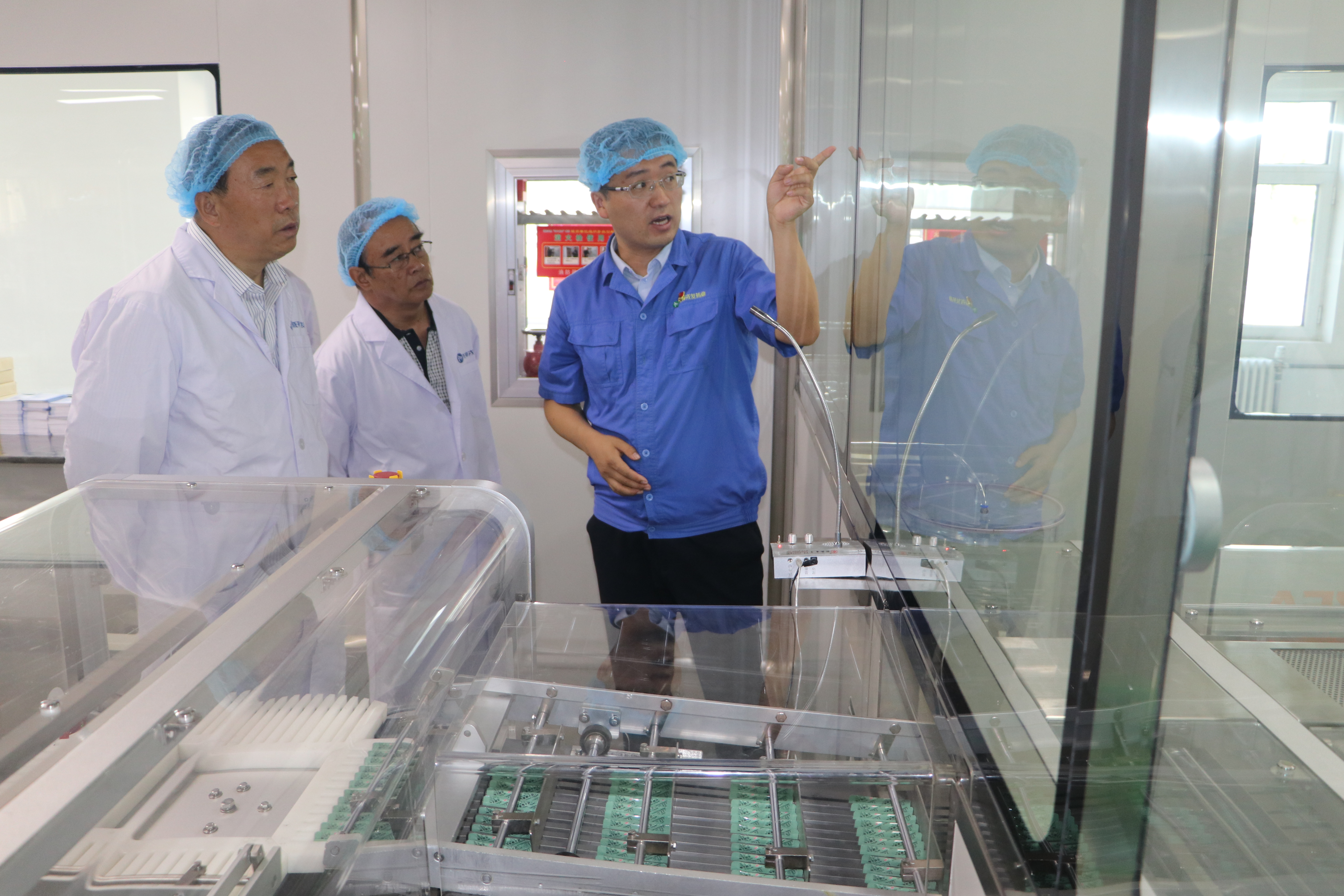 在制劑車間,錢雙喜向調(diào)研組一行講解了元胡止痛滴丸滴制、晾丸等的生產(chǎn)工藝流程,調(diào)研組一行在外包裝聯(lián)動(dòng)線前觀看了元胡止痛滴丸內(nèi)包及外包裝生產(chǎn)全過(guò)程。
