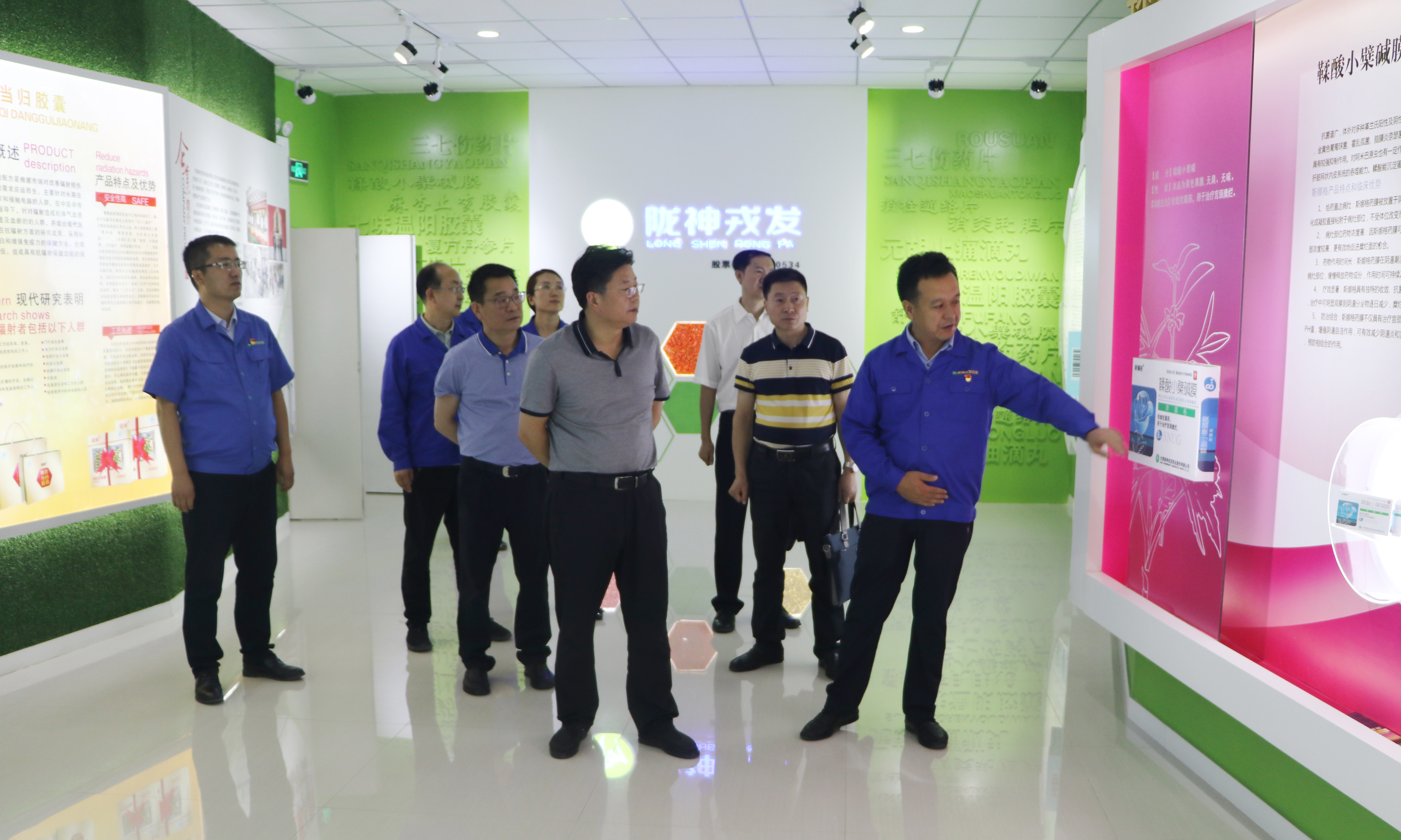 在產(chǎn)品展廳,黨委書(shū)記、總經(jīng)理康永紅介紹了公司主打產(chǎn)品元胡止痛滴丸及斯娜格藥膜、酸棗仁油滴丸、七味溫陽(yáng)膠囊等4個(gè)獨(dú)家品種和其它產(chǎn)品并結(jié)合隴神戎發(fā)“年產(chǎn)200億?,F(xiàn)代中藥生產(chǎn)線(xiàn)擴(kuò)能改造項(xiàng)目”規(guī)劃圖,對(duì)已建成投入使用的七大單體樓宇逐一介紹。