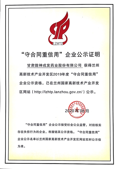 9月29日,蘭州國家高新技術(shù)開業(yè)區(qū)“信用體系建設(shè)培訓(xùn)及‘守合同重信用’企業(yè)授牌儀式”在高新區(qū)科技孵化大廈隆重舉行。隴神戎發(fā)獲評(píng)“2019年度‘守合同重信用’企業(yè)”,并在高新區(qū)官方網(wǎng)站進(jìn)行信用企業(yè)實(shí)時(shí)公示。