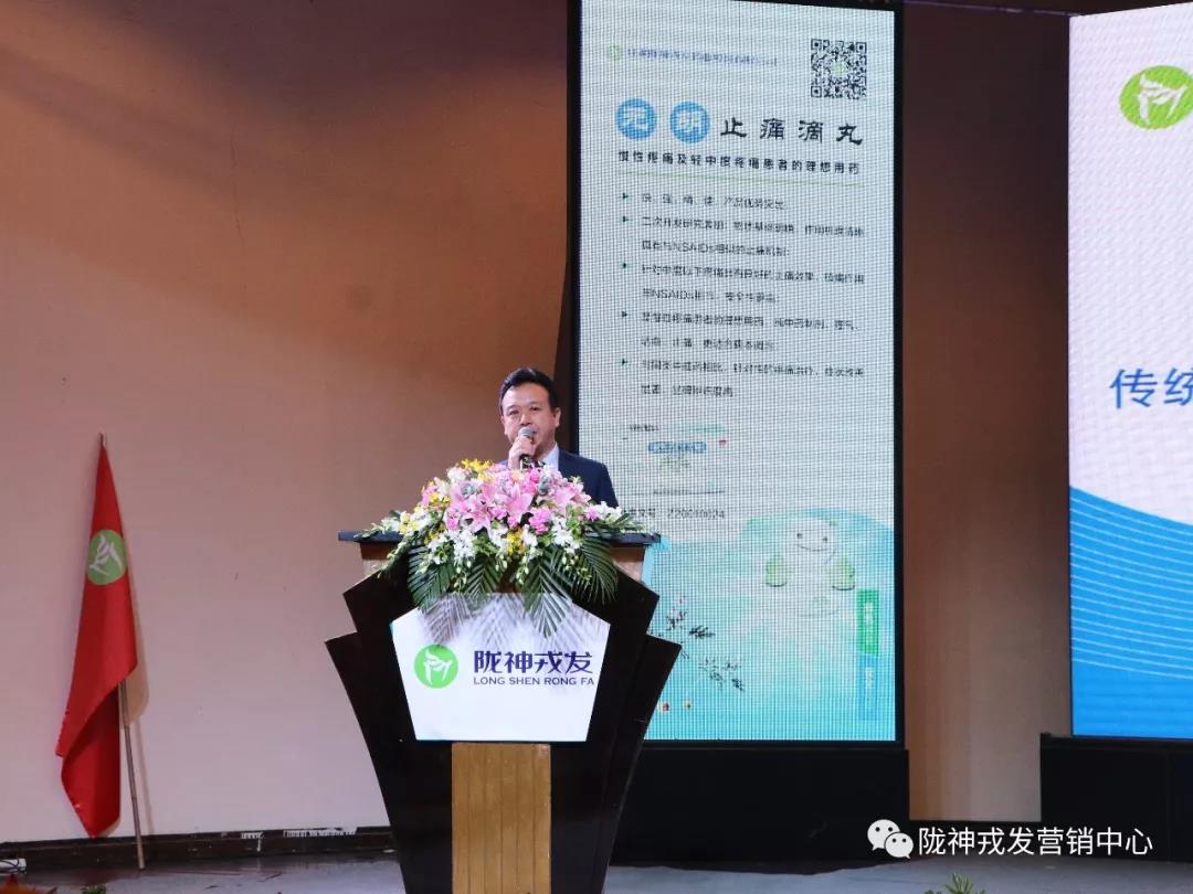 接下來,由甘肅隴神戎發(fā)藥業(yè)股份有限公司董事、總經(jīng)理康永紅先生做重要講話??悼偦仡櫫穗]神戎發(fā)從建廠直到現(xiàn)在一步一個腳印的路程,以及所獲得的諸多科技、質(zhì)量獎項。新生產(chǎn)基地的建成投產(chǎn)是隴神戎發(fā)做強、做大、做優(yōu)的基石。康總經(jīng)理在隴神戎發(fā)積極投入的營銷支持,與合作伙伴的互利共贏,設(shè)置各個大區(qū)及學(xué)術(shù)人員,加強產(chǎn)品力打造等方面進行了簡介??悼偨?jīng)理表示,要抓住隴藥產(chǎn)業(yè)發(fā)展及甘肅中藥大品種培育的時機,把元胡止痛滴丸推到一個新的高度,隴神戎發(fā)愿與各位合作伙伴精誠合作、共贏未來!