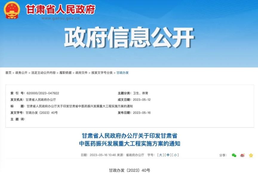 甘肅省人民政府辦公廳關于印發(fā)甘肅省中醫(yī)藥振興發(fā)展重大工程實施方案的通知