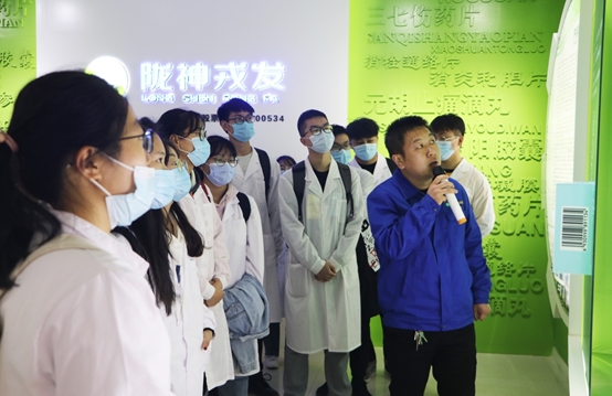 本次參觀是西北師范大學(xué)針對制藥工程專業(yè)本科生開展的一次藥品GMP生產(chǎn)車間實地參觀與學(xué)習(xí)。師生們分別參觀了制劑大樓展廳、制劑車間、外包裝車間、前處理提取車間及公司質(zhì)檢研發(fā)大樓7樓質(zhì)量檢驗中心。在制劑大樓展廳,孫波總助為師生們簡要介紹了公司的基本概況、發(fā)展歷程等,重點對公司元胡止痛滴丸、鞣酸小檗堿膜等4個全國獨家產(chǎn)品及保健食品黃芪當(dāng)歸膠囊進行介紹。隨后,師生們進入制劑車間,詳細(xì)了解公司主打產(chǎn)品元胡止痛滴丸的滴制、生產(chǎn)等工藝流程,并在外包裝車間聯(lián)動線前觀看了元胡止痛滴丸內(nèi)包及外包裝生產(chǎn)全過程。在前處理提取車間,講解人員細(xì)致的講解使師生們對中藥材前處理整個加工環(huán)節(jié)有了更進一步的了解。最后,師生們一行來到質(zhì)檢研發(fā)大樓7樓,實地參觀了公司質(zhì)量檢驗中心,在工作人員的講解下,對藥品檢驗的全過程進行了學(xué)習(xí)。