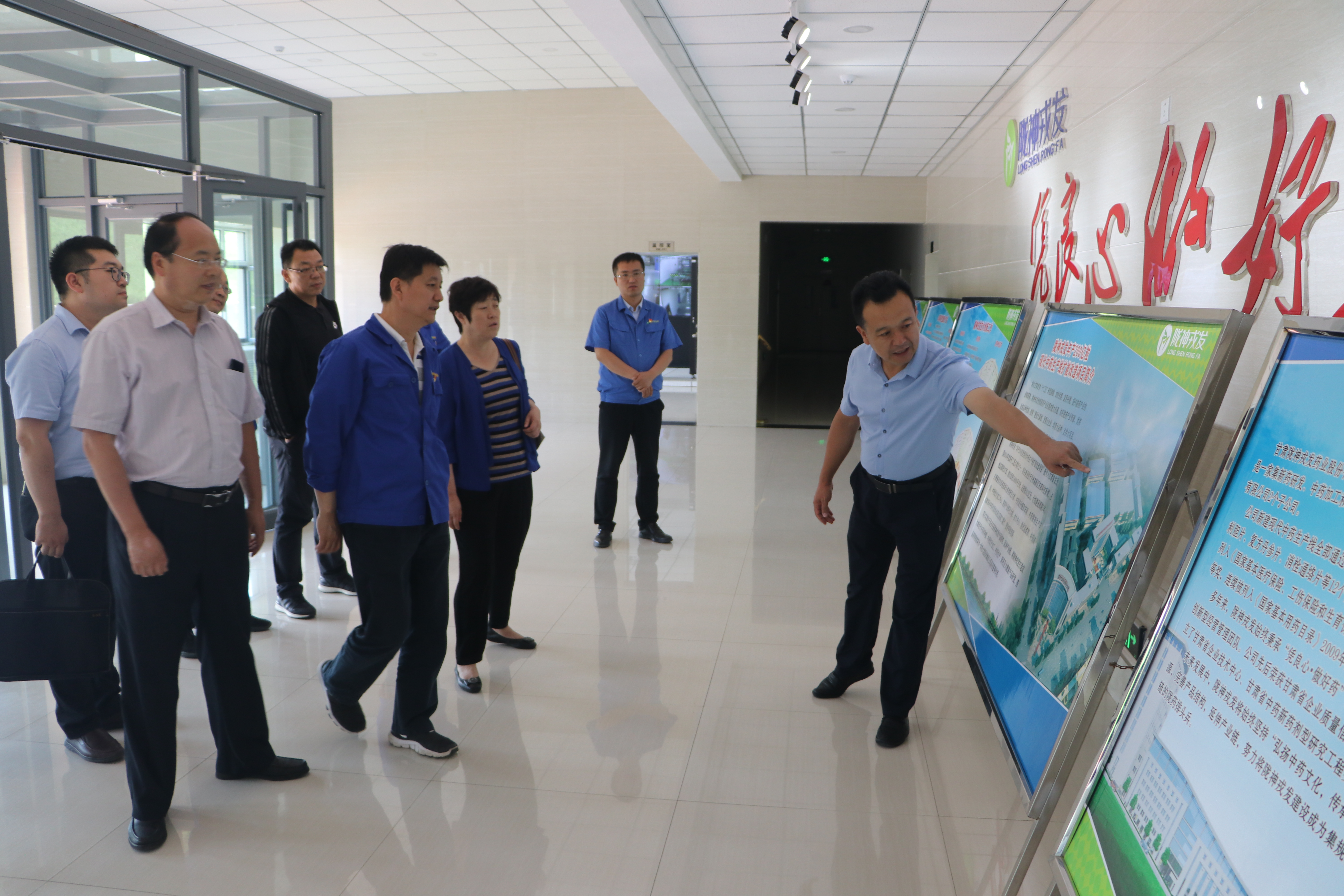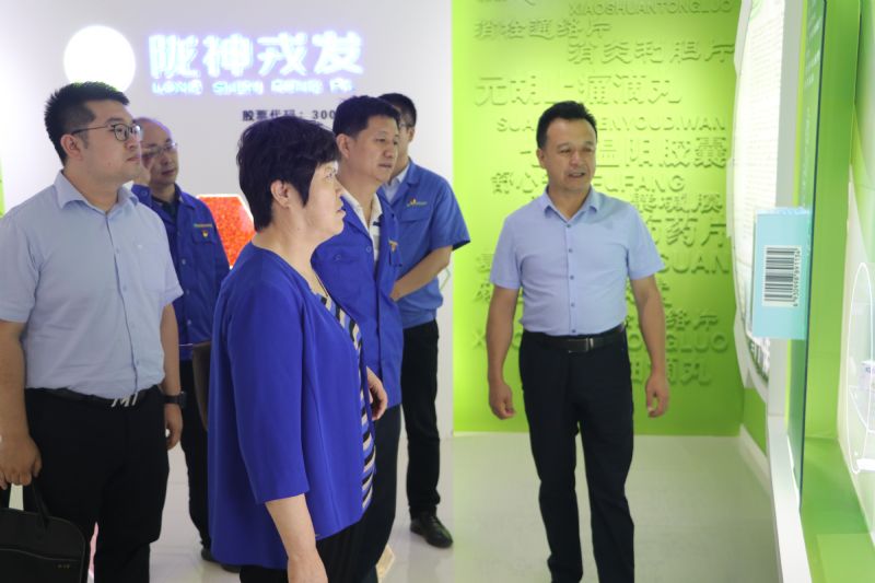 王文秀一行參觀了公司產(chǎn)品展廳、生產(chǎn)監(jiān)控室,視察了隴神戎發(fā)“年產(chǎn)200億?,F(xiàn)代中藥生產(chǎn)線擴(kuò)能改造項(xiàng)目”建設(shè)項(xiàng)目一期“年產(chǎn)100億粒滴丸劑生產(chǎn)基地建設(shè)項(xiàng)目”,黨委書記、總經(jīng)理康永紅介紹了公司主打產(chǎn)品元胡止痛滴丸等4個(gè)獨(dú)家品種和其它普藥品種,并通過生產(chǎn)監(jiān)控室介紹了隴神戎發(fā)制劑滴丸生產(chǎn)線及包裝聯(lián)動線。