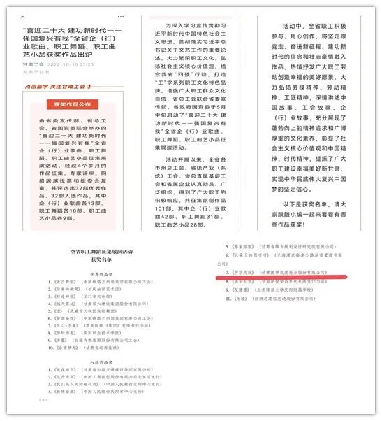 近日,由甘肅省總工會、省委宣傳部、省政府國資委于5月中旬主辦的“喜迎二十大 建功新時代 強國復興有我”全省企(行)業(yè)歌曲、職工舞蹈、職工曲藝小品征集展演、評選活動結(jié)束,由甘肅藥業(yè)集團選送的隴神戎發(fā)舞蹈《中華民族》喜獲職工舞蹈類入選作品獎。