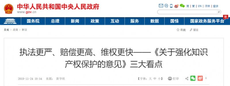 新華社北京11月24日電 題:執(zhí)法更嚴(yán)、賠償更高、維權(quán)更快——《關(guān)于強(qiáng)化知識(shí)產(chǎn)權(quán)保護(hù)的意見》三大看點(diǎn)
