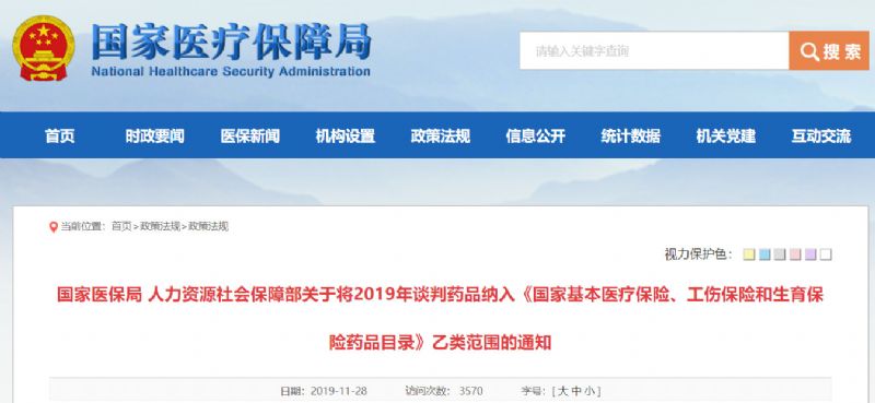 鏈接:關(guān)于將2019年談判藥品納入《國(guó)家基本醫(yī)療保險(xiǎn)、工傷保險(xiǎn)和生育保險(xiǎn)藥品目錄》乙類范圍的通知 政策解讀