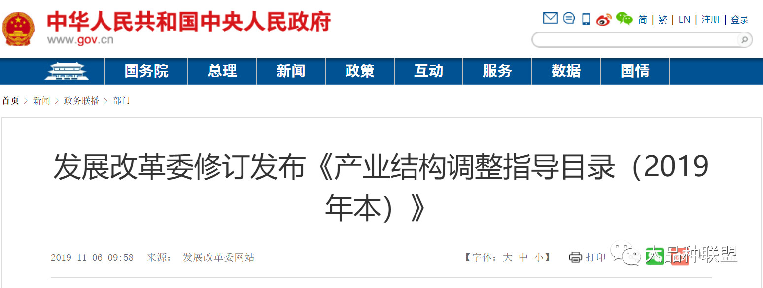 昨日(11月6日),中國政府網(wǎng)公布了由國家發(fā)改委發(fā)布的《中華人民共和國國家發(fā)展和改革委員會(huì)令》(第92號(hào)),《產(chǎn)業(yè)結(jié)構(gòu)調(diào)整指導(dǎo)目錄(2019年本)》(簡(jiǎn)稱《產(chǎn)業(yè)目錄》)。